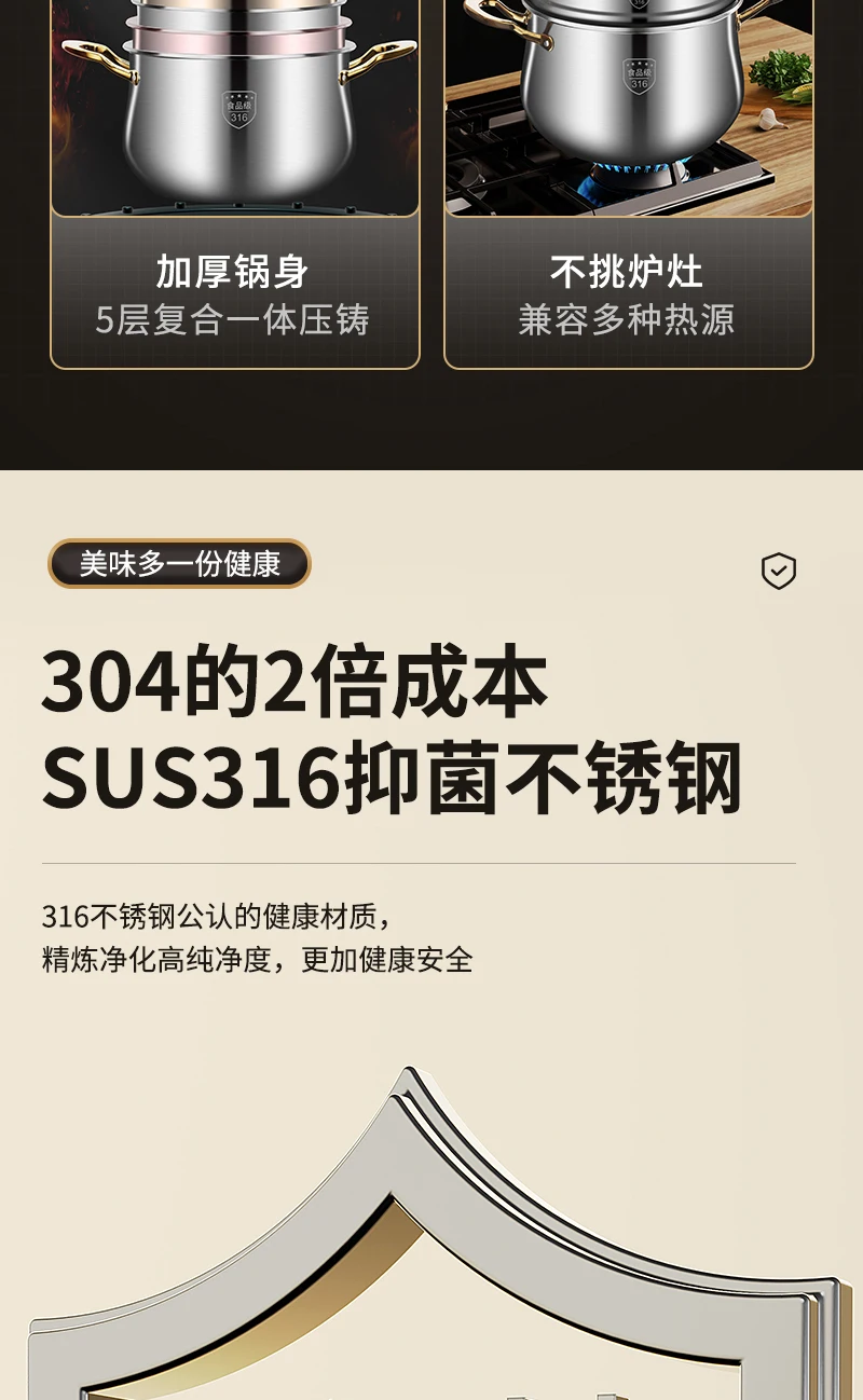 Healthy Material 316 Antibacterial stainless steelIncrease the pot body large capacity to deepen the pot body