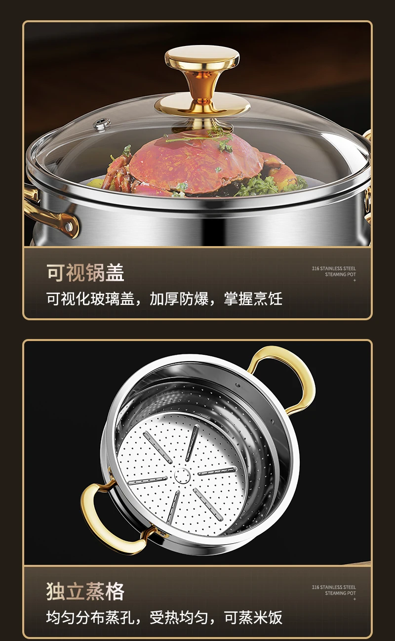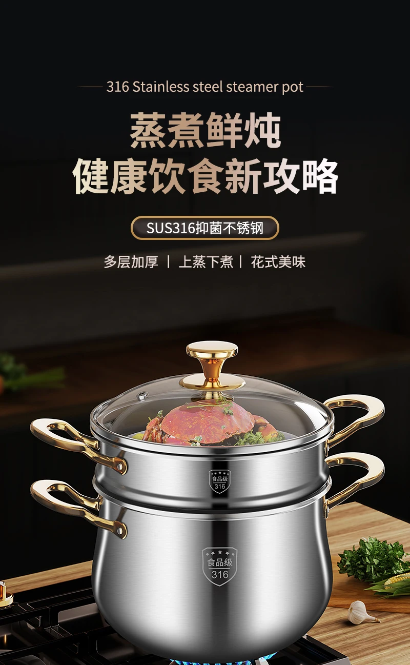 Steamed fresh stewA new guide to healthy eatingSUS316 Antibacterial stainless steelMultilayer thickening 1 steaming and boiling 1 Fancy delicious