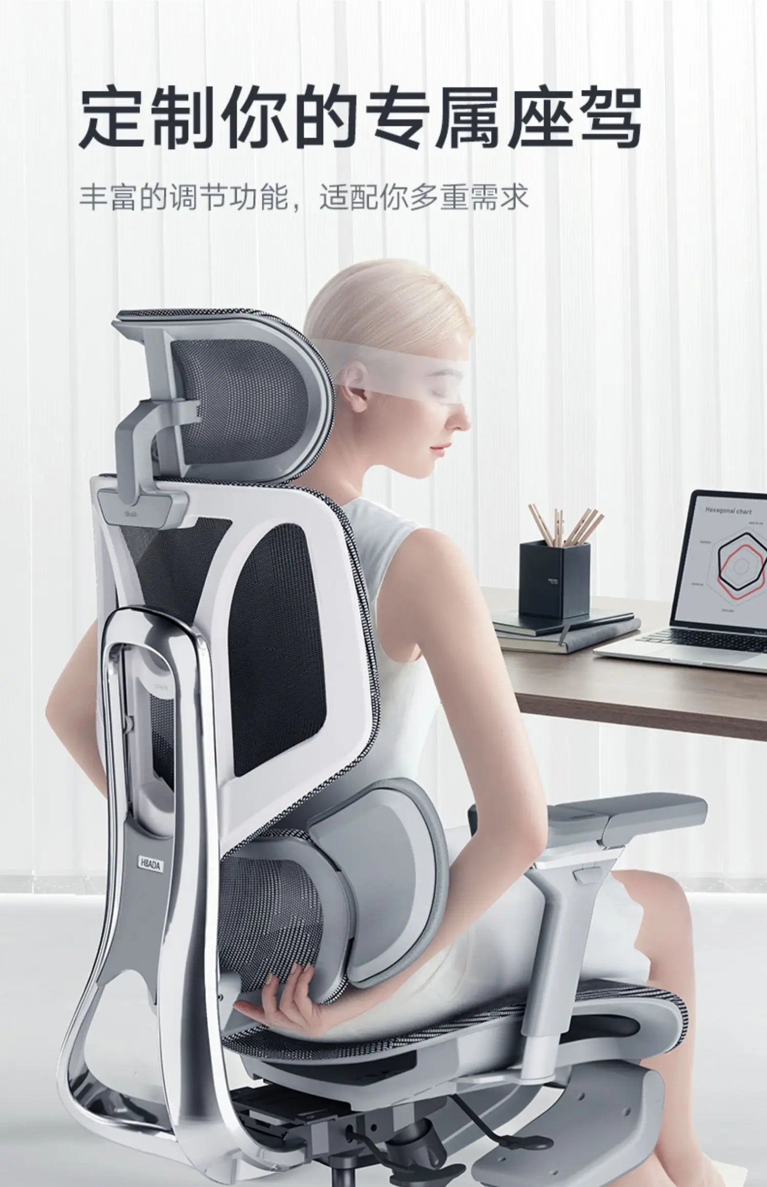 Black and white tone E3 three-zone waist protection ergonomic chair office computer chair