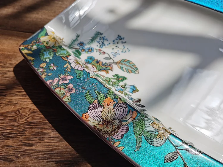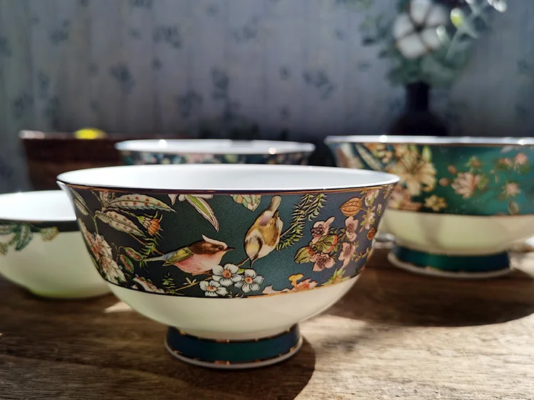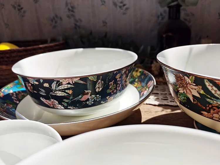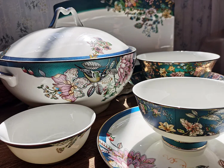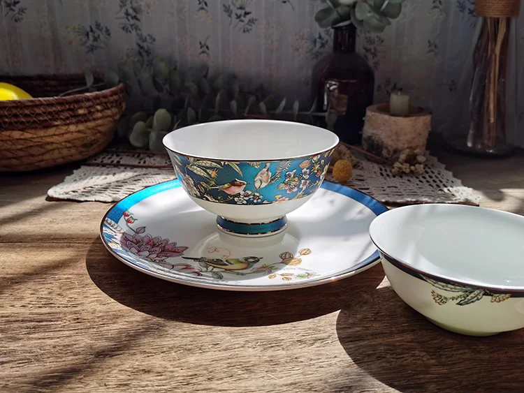 Bone china tableware Chinese style pastoral style 4.5 inch rice bowl flower bird embossed flower 8 inch plate 12 inch fish plate