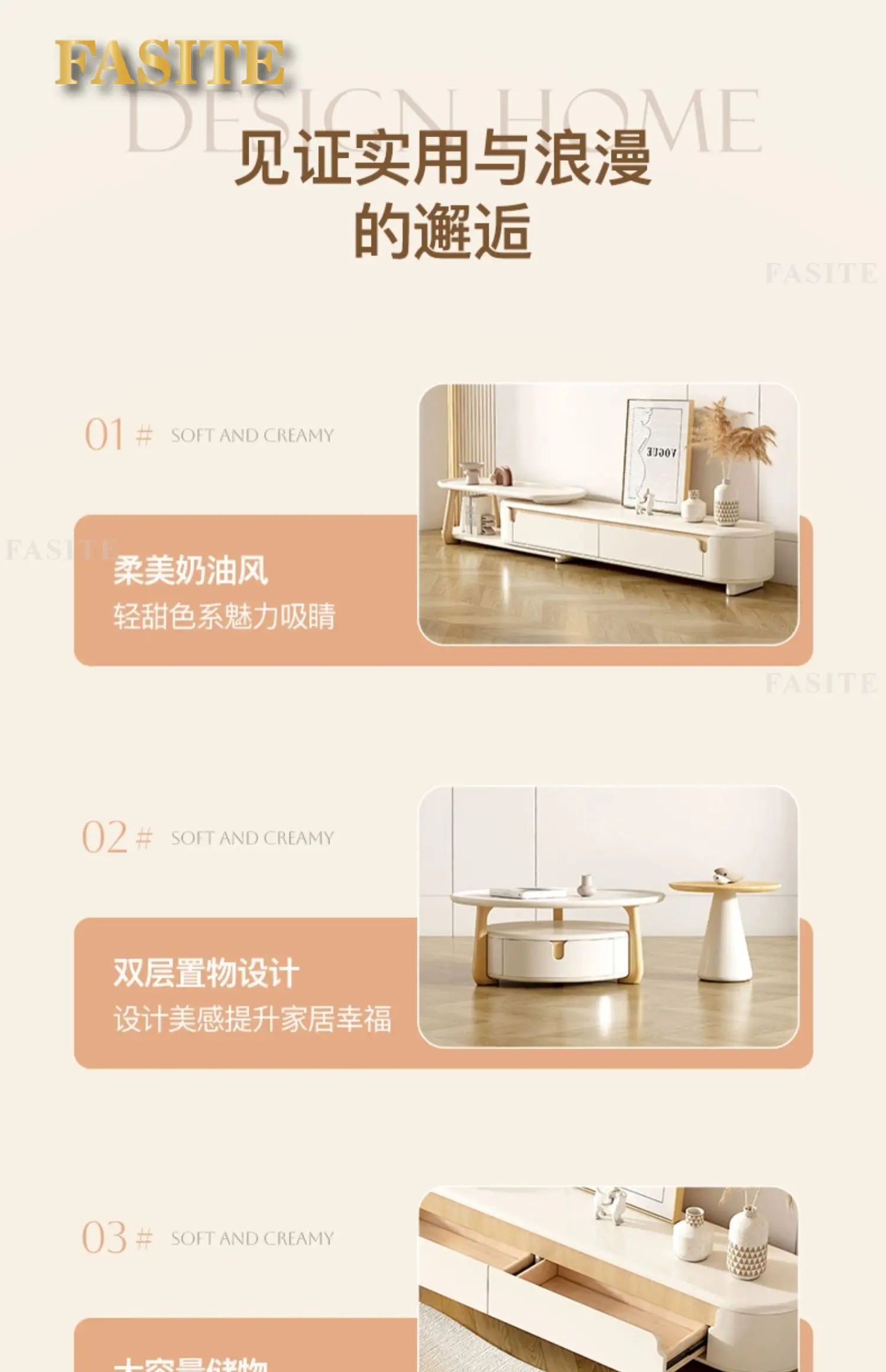 Cream style floor-to-ceiling modern simple living room home small apartment French coffee table combination