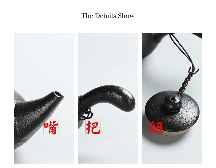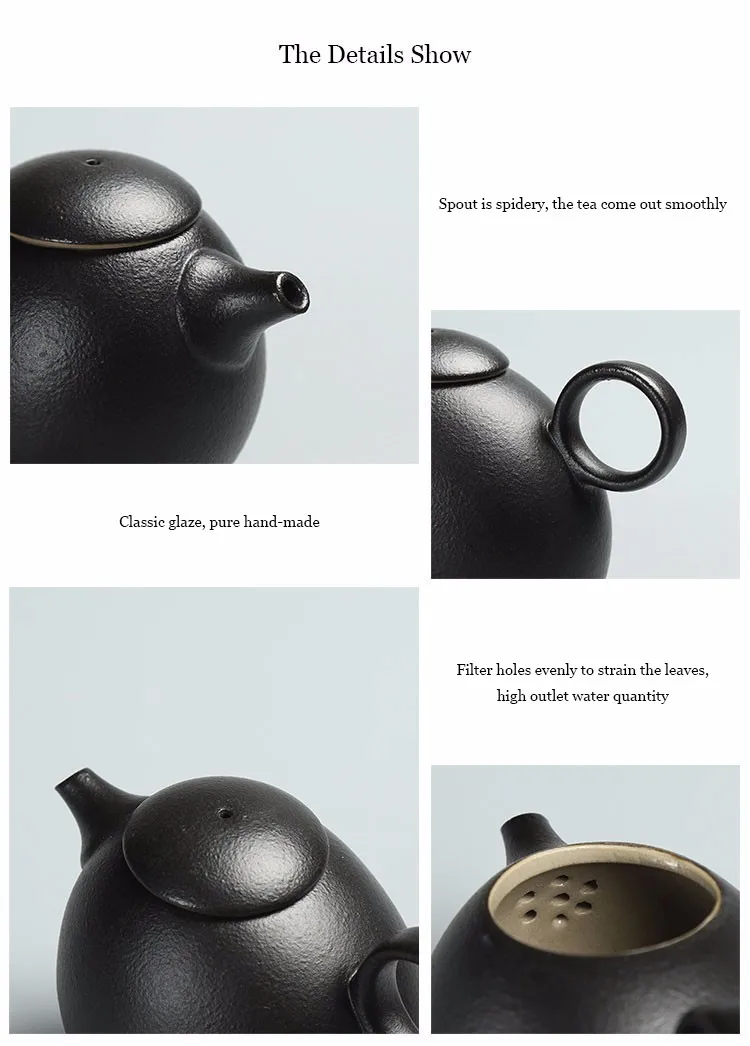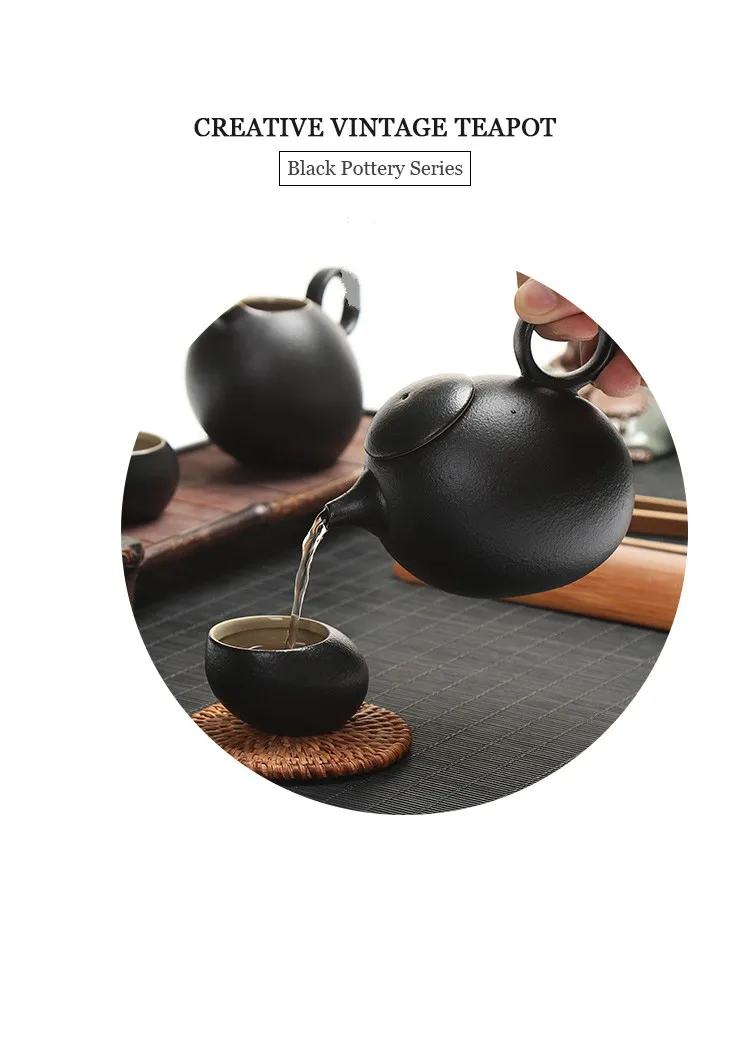 Creative Black Pottery Teapots Hand Made Vintage Ceramic Tea Pot Chinese Kung Fu Tea Set Kettle Contentment Drinkware