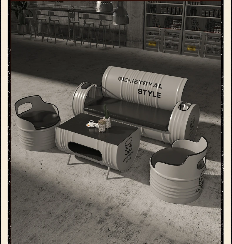 Deck Sofa KTV Casual Small Quiet Bar Retro Creative Oil Drum Iron Customization Industrial Style Bar Table and Chair Combination
