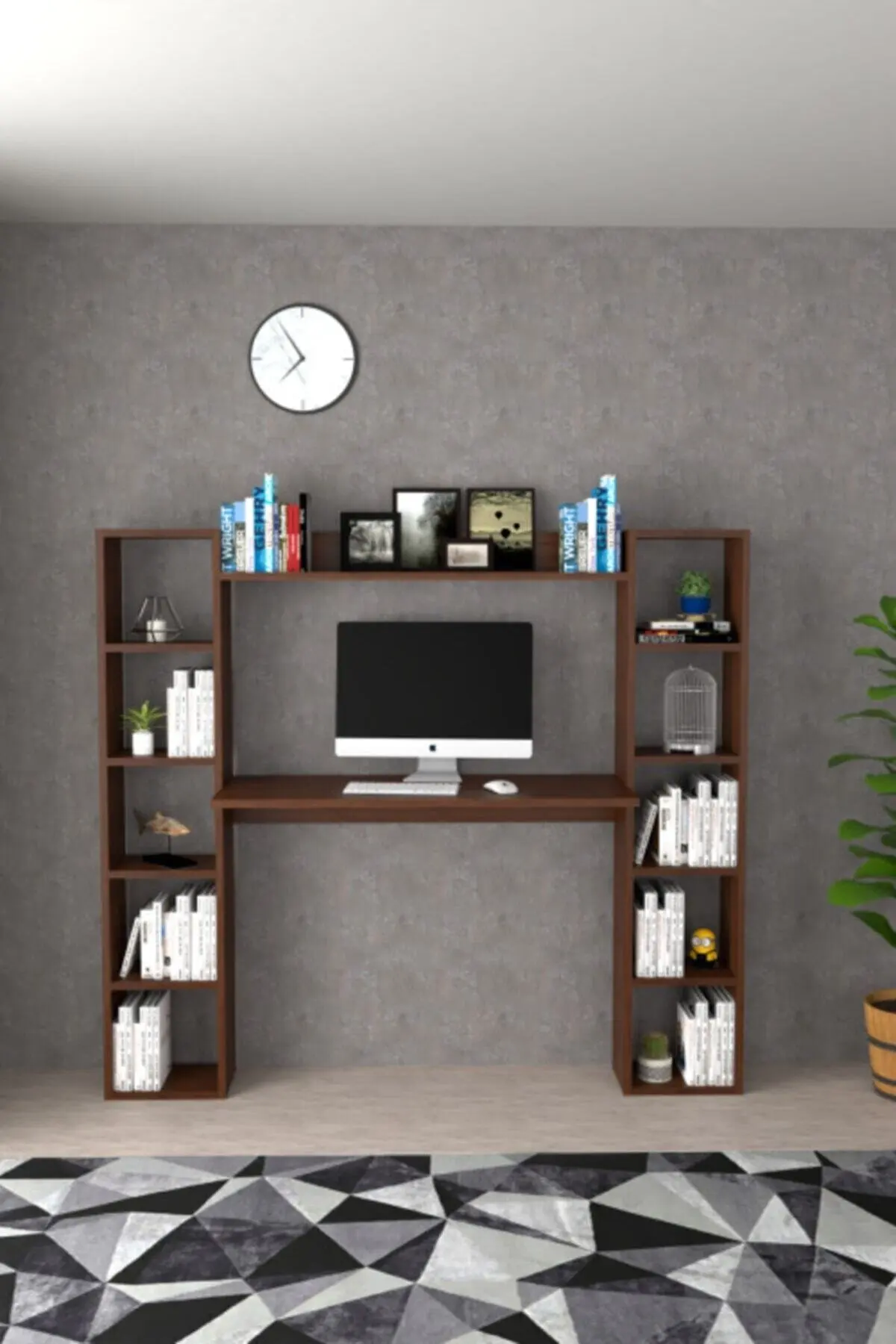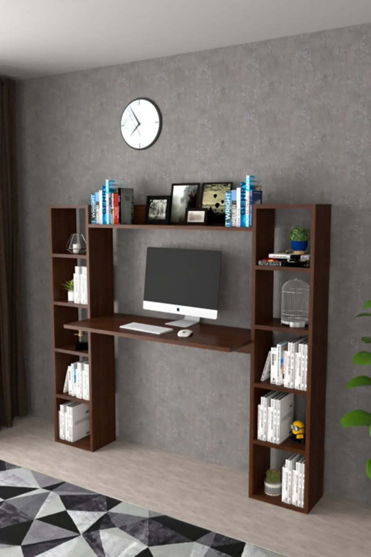 Double Bookshelf Desk Computer Desk With Bookshelf Bookcase Writing Desks For Home Studying Gaming Work Table Office Furnitures