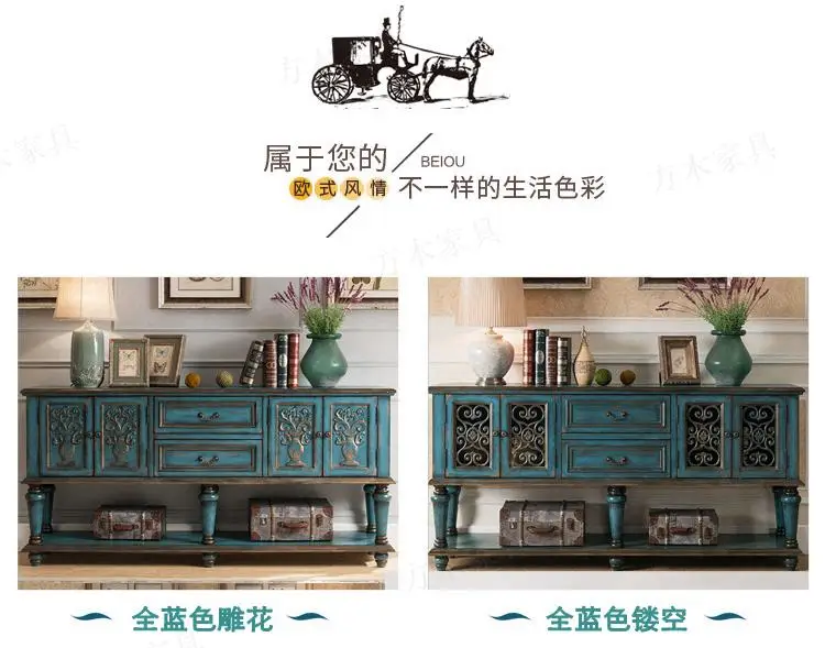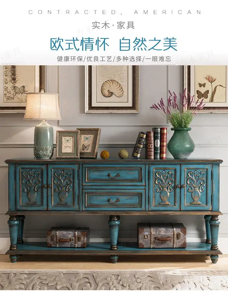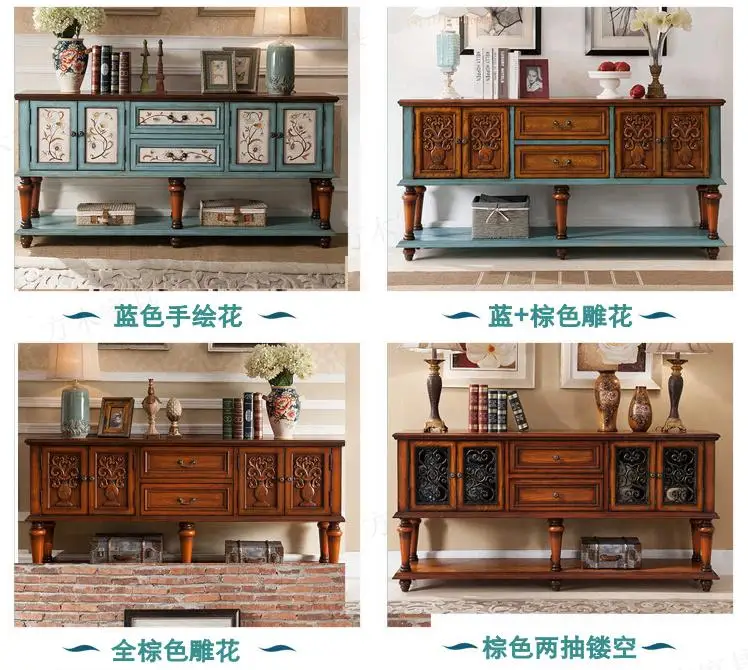European-Style Solid Wood Console Table American Country Side Cabinet 1.6 M Side View Table Window Side Desk