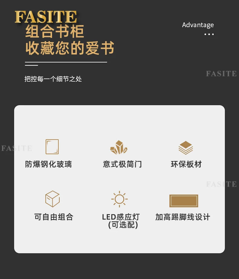 Glass door, light luxury bookcase, living room, floor to wall, dustproof bookcase, bookshelf