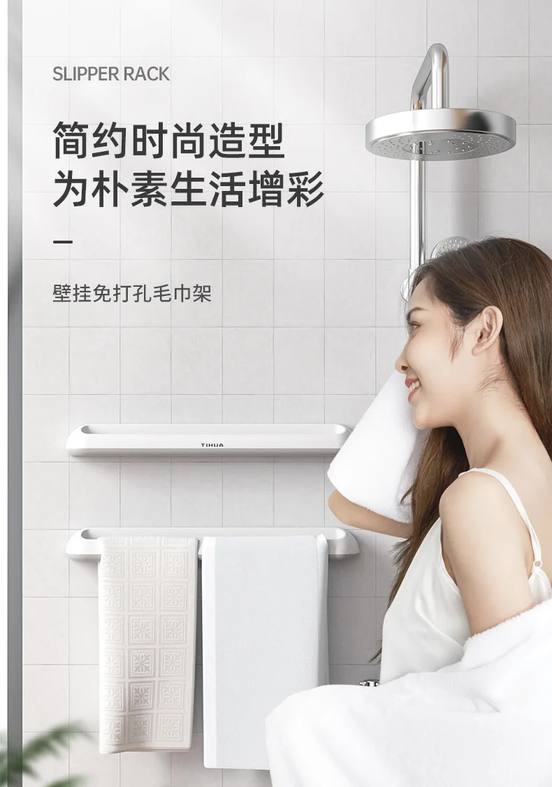 Hand Towel Bar Self Adhesive Wall Mounted Bathroom Towel Holder Kitchen Dishcloth Storage Rod ABS Material