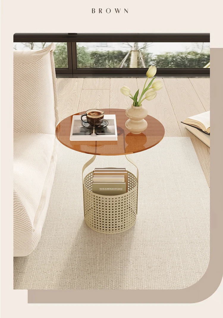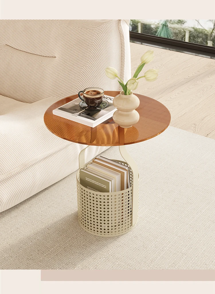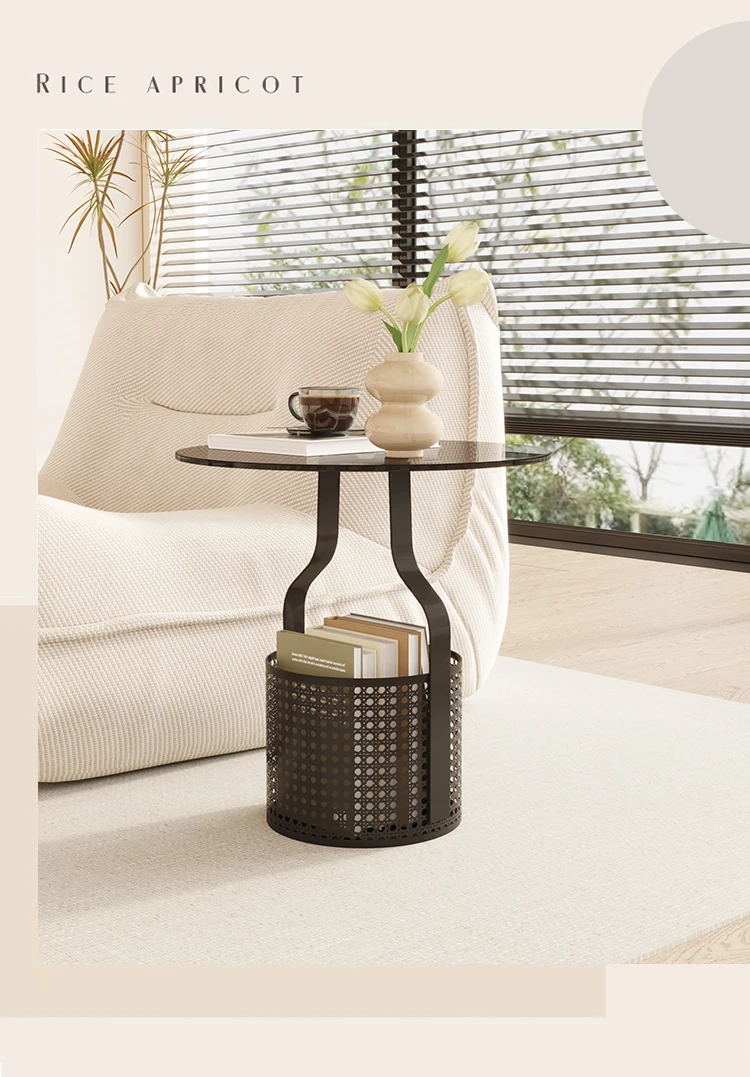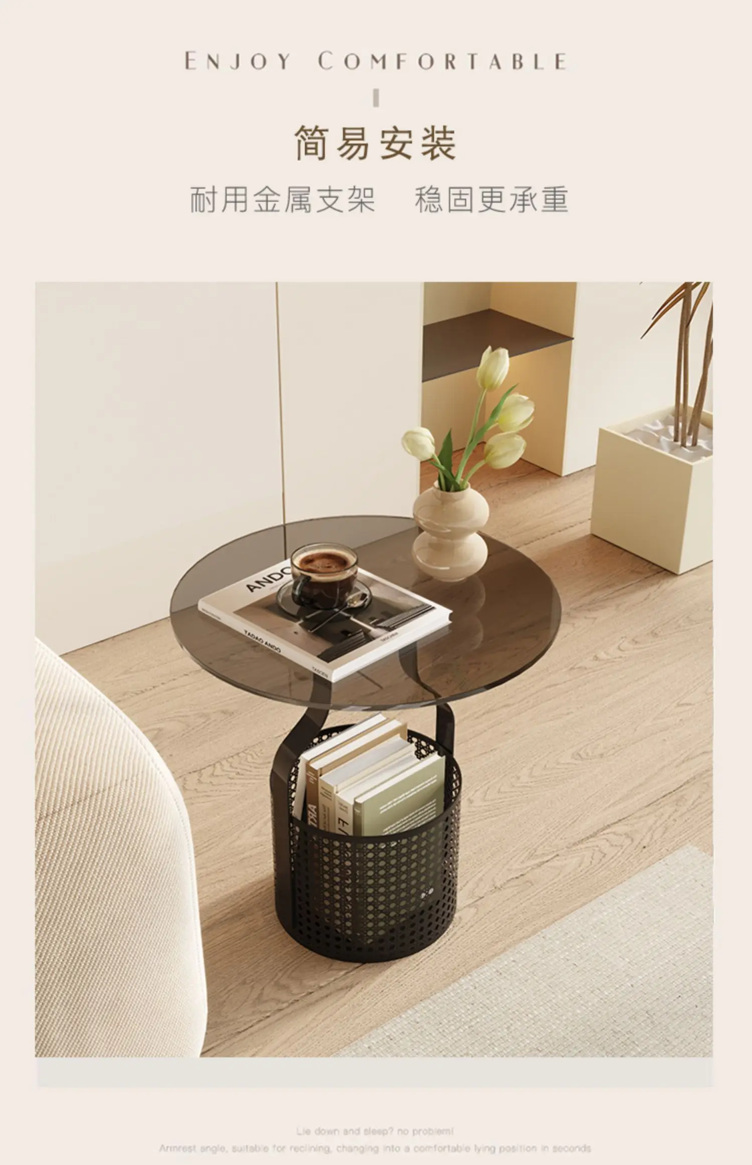 Home online celebrity simple sofa, small round table, living room glass, small coffee table, small bedside table.