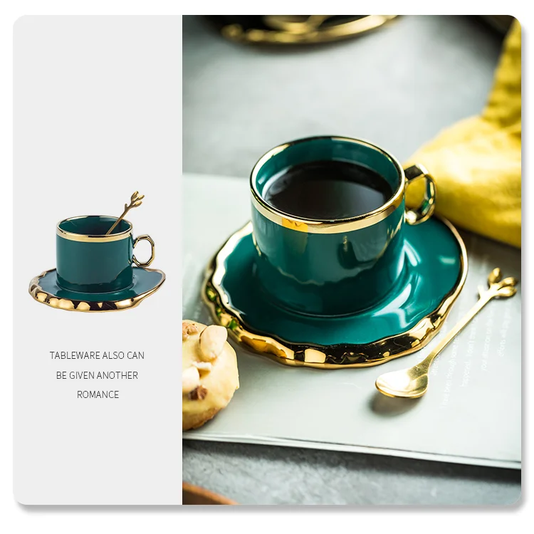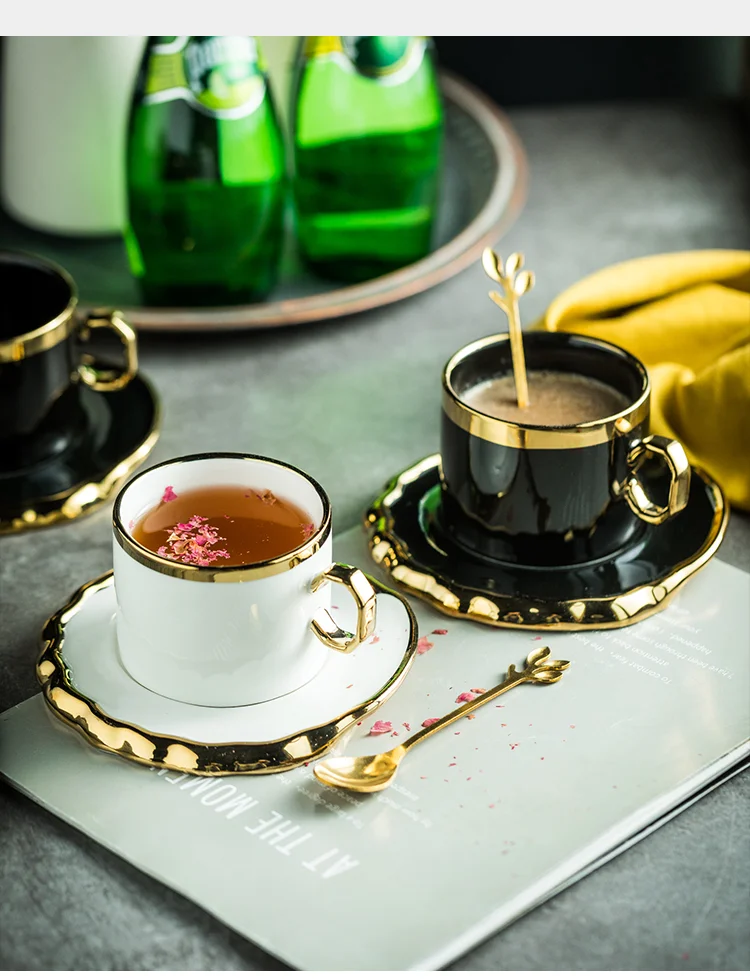 Light Luxury Ceramic Mug Dining Room Desktop Golden Stroke Cup and Saucer Set Creative Breakfast Milk Cups Home Decoration