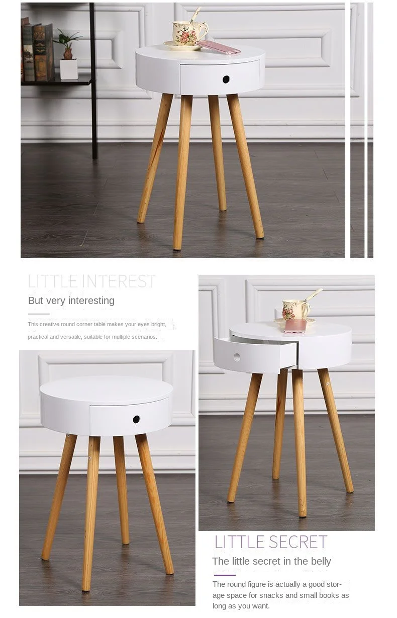 Nordic Furniture White Bedside Table Small Coffee Tables Living Room Modern Balcony Bedroom Cylinder Sofa Side Corner Movable