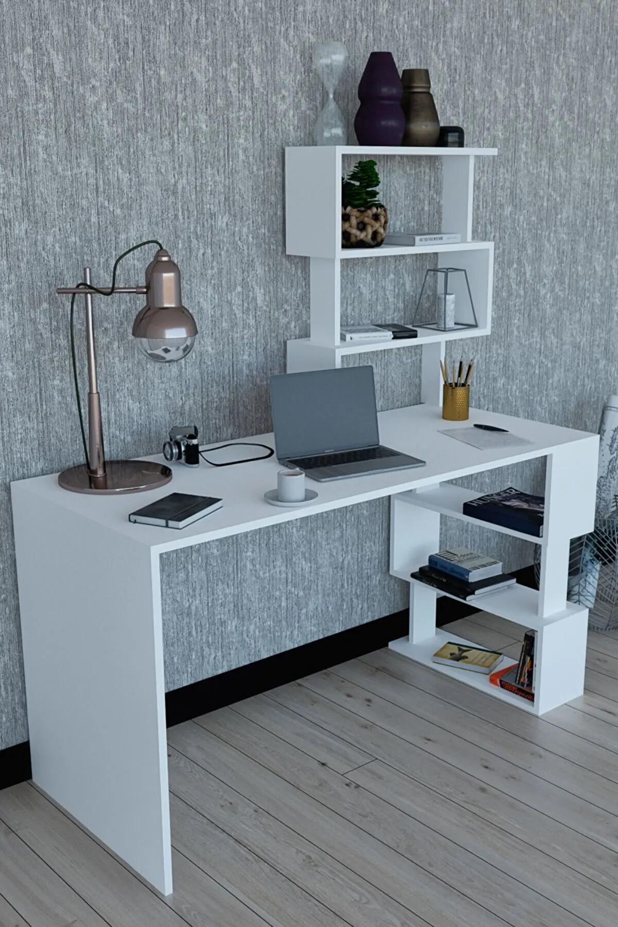New Modern Computer Desk With Bookshelf Bookcase Writing Desks For Home Studying Gaming Work Bedroom Table Office Furnitures....