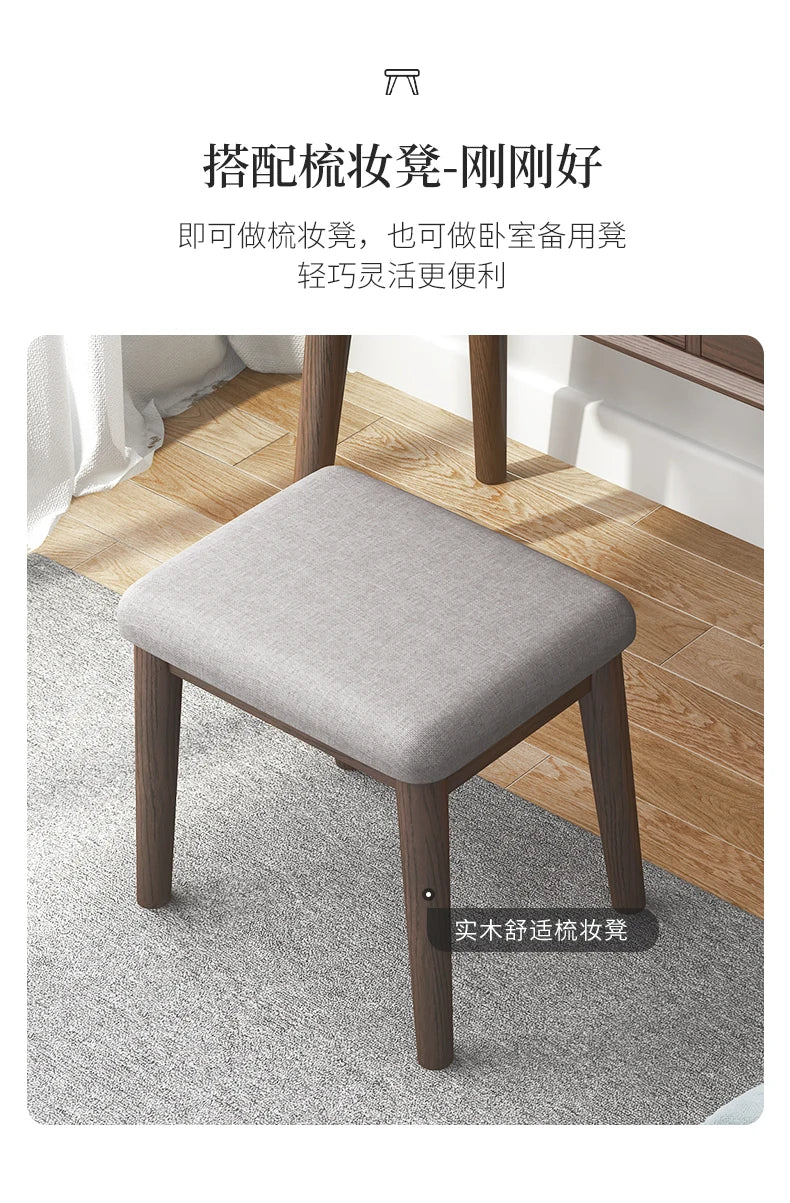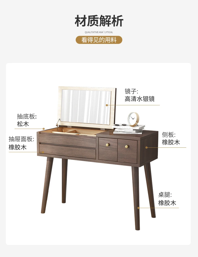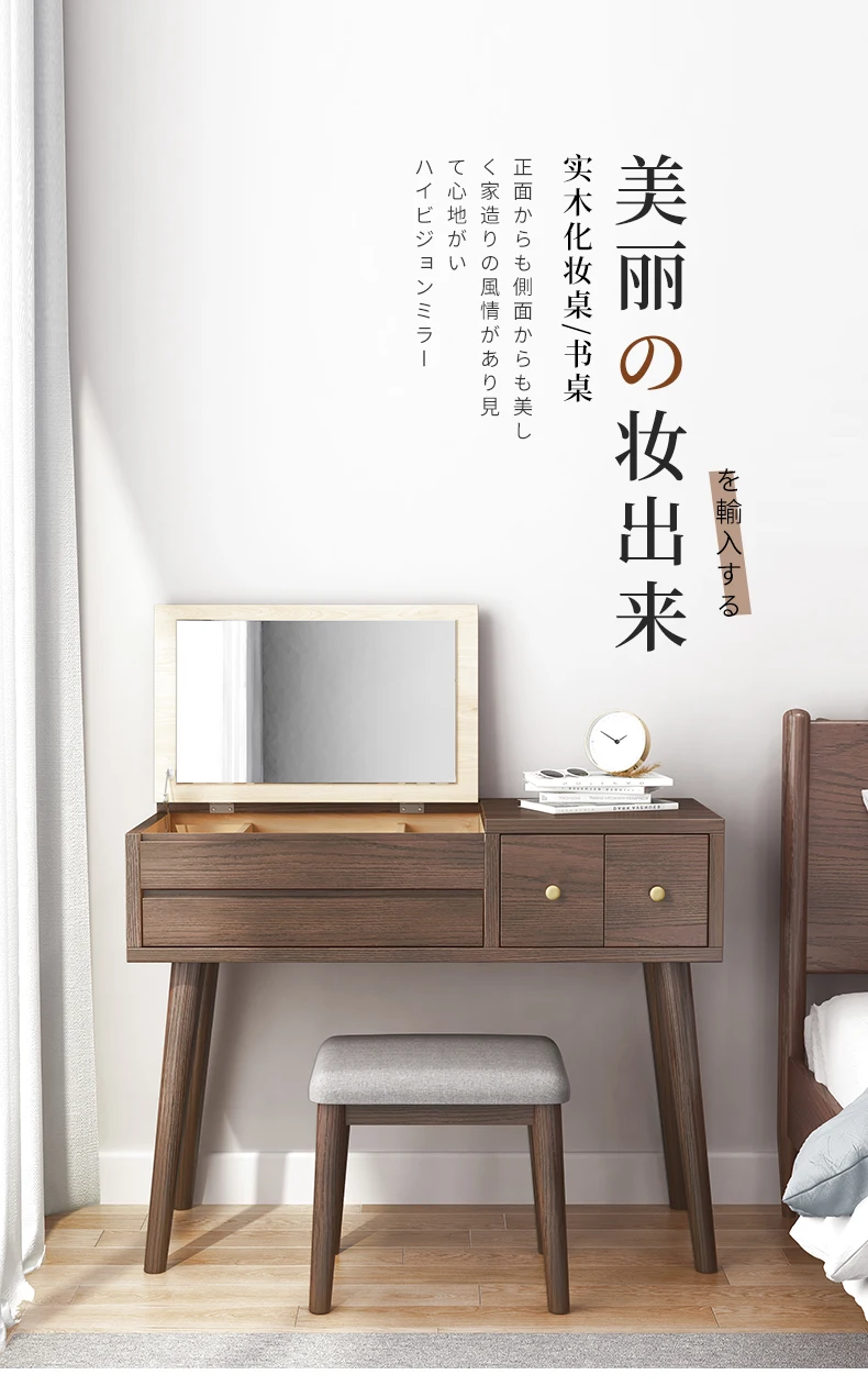 Qf Modern Minimalist Solid Wood Dresser Desk Integrated Mirror Foldable Makeup Table