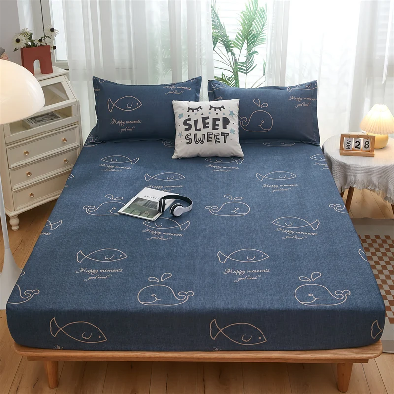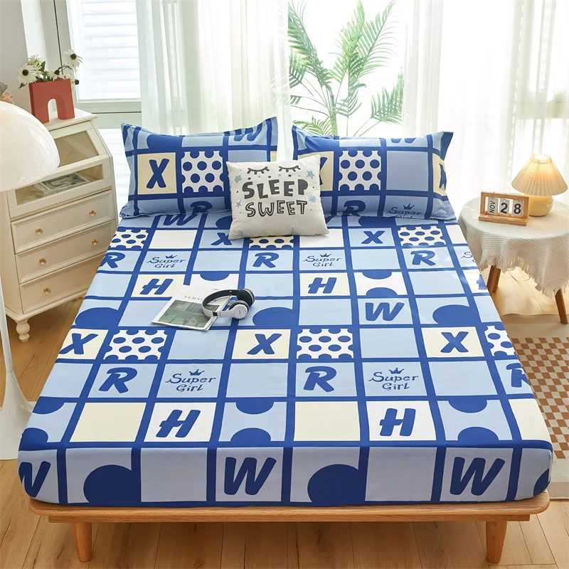 Solstice Home Textile Girl Kid Teen Bedding Fitted Sheet Flower Blue Cartoon Smiley Face 1Pcs Boy Bed Mattress Cover Double Bed