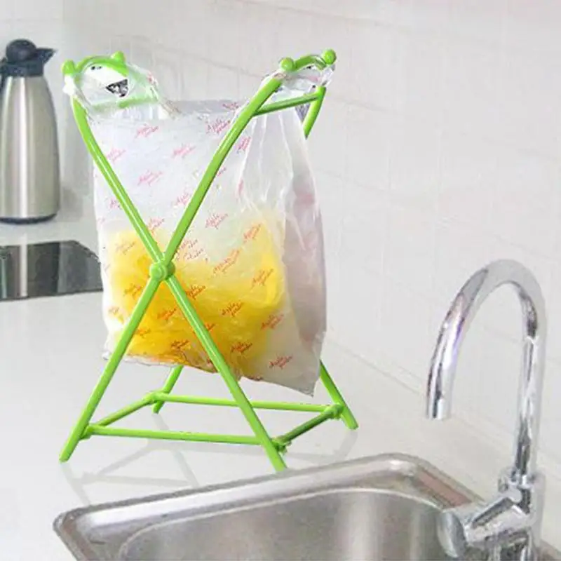 X-type Folding Trash Can Plastic Trash Bag Holder Garbage Bag Rack Home Kitchen Storage Rack